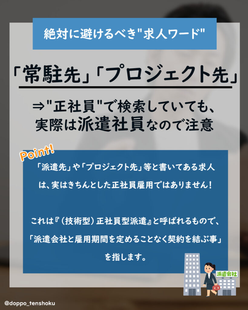 「派遣先」や「プロジェクト先」等といったワードを記載している求人には、