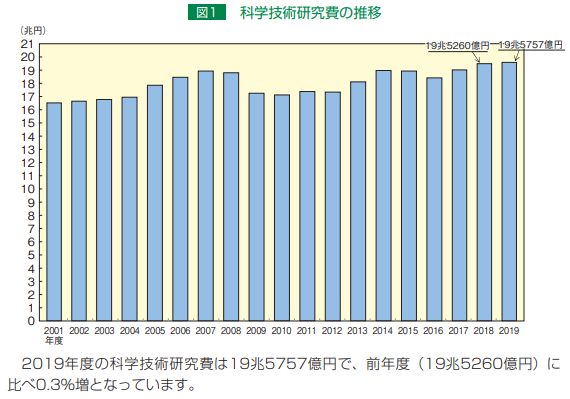 注目されていると言いながらも、日本の科学研究費は長年横ばいが続いており、