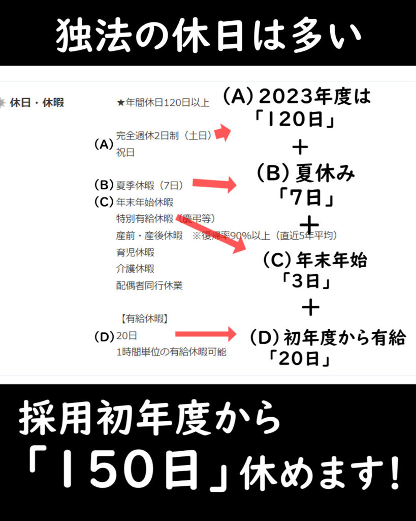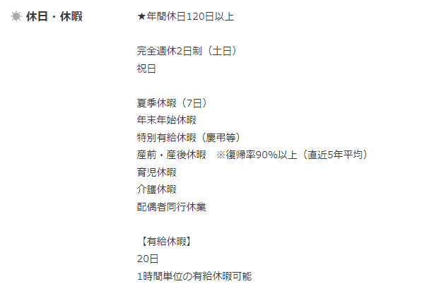 Q.求人票には「年間休日120日以上」としか書いていないけど?