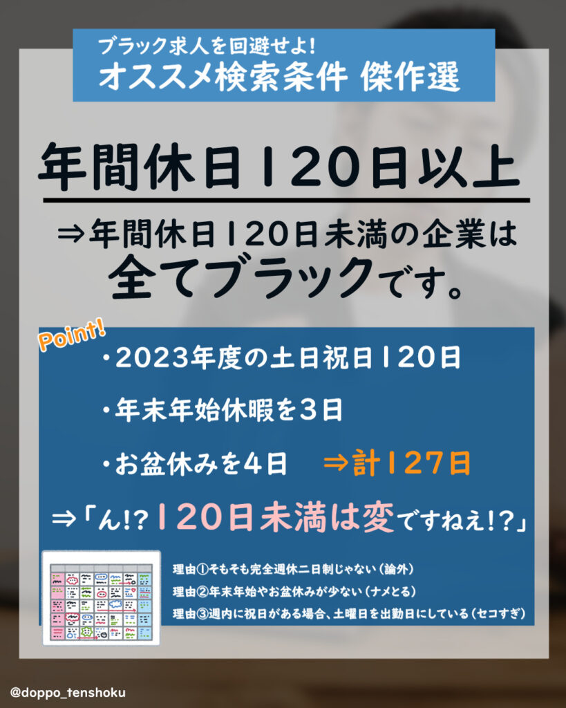 『年間休日120日』のチェックボックスは絶対に外さないようにしましょう!
